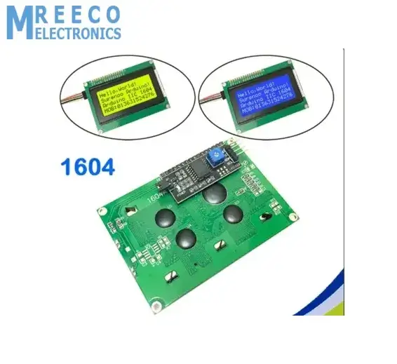 The 16×4 LCD Character Display with I²C/TWI interface and backlight is ideal for Arduino and microcontroller projects, offering easy wiring and clear text display.