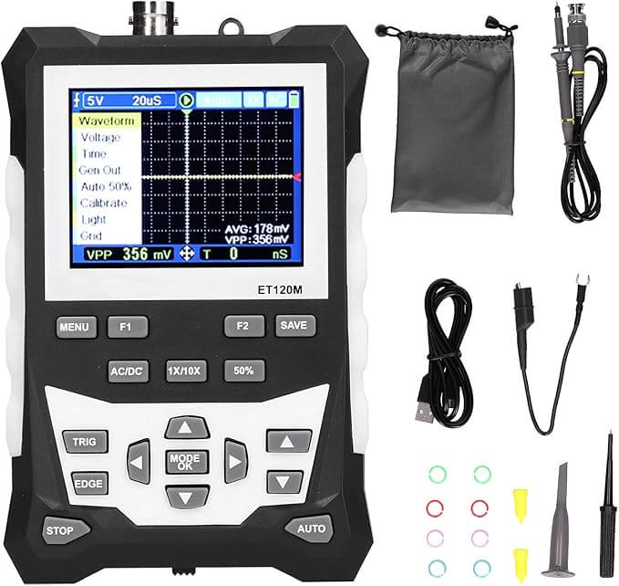 Users generally praise the ET120M for its capabilities and portability at an affordable price. However, some reviewers mention that additional features, such as the built-in multimeter on certain models, feel less intuitive than dedicated devices. You may need multiple attempts to lock the trigger function onto low-frequency signals. Hobbyists and field technicians find the device suitable, but it does not replace high-end laboratory equipment or support high-frequency applications.
