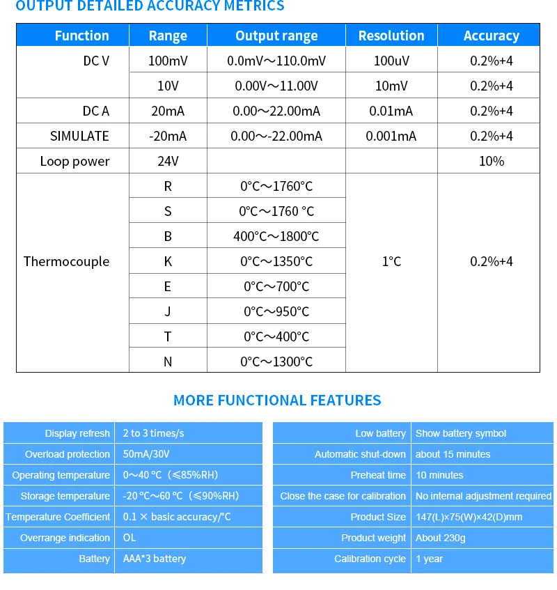 1. 100 mV, 30 V DC voltage measurement, 20 mA DC current measurement, and switching value measurement;