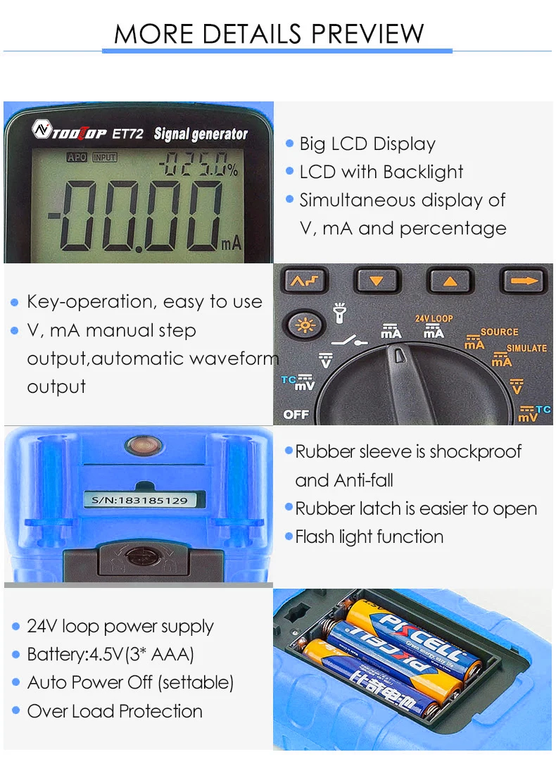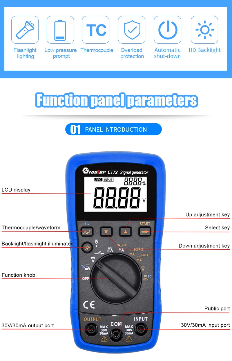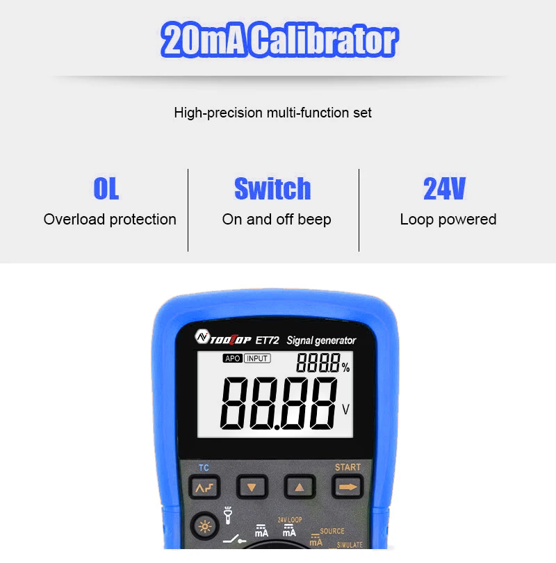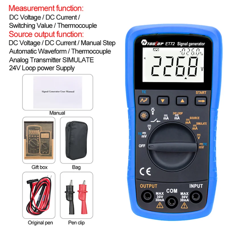 The signal generator is mainly used for debugging industrial field PLC, process instrumentation, electric valves, and similar equipment. Moreover, it is easy to operate thanks to its friendly button-character interface. In addition, the device is small and lightweight, making it convenient to carry for fieldwork. Furthermore, it offers a long standby time, ensuring reliability during extended tasks. Therefore, users can count on it for high precision and consistent performance in various applications.