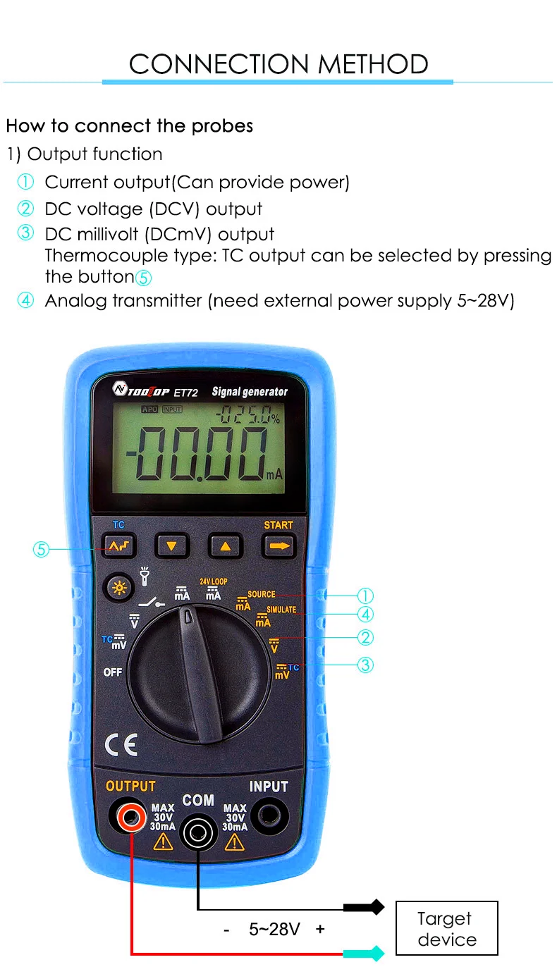 2. 100 mV, 30 V DC voltage output, 20 mA DC current output and SIMULATE output;