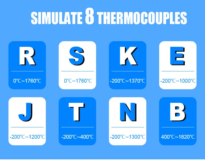 7. Eight scale division (i.e., R, S, B, K, E, J, T and N) thermocouple measurement and output function;