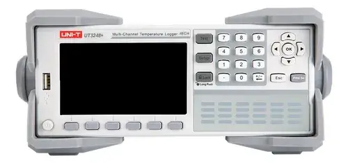 UT3200+ series multi-channel temperature tester has six models, UT3208+/UT3216+/UT3224+/UT3232+/UT3240+/UT3248+, corresponding to 8, 16, 24, 32, 40 and 48 channels respectively. The instrument has a 4.3-inch color LCD display and a beautiful interface. It can simultaneously collect multi-channel temperature data, provide rise and fall temperature alarms, and communicate with each other. It supports multiple temperature sensors, has a fast response speed, stable data, and has a broken pair detection function.